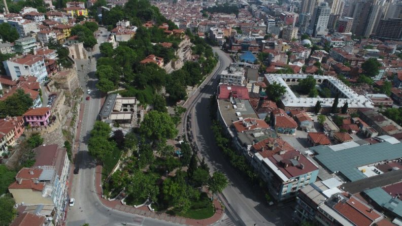 Şehrin merkezi konumundaki Kent Meydanı ve Ulucami’nin bulunduğu Heykel adeta sessizliğe büründü. Bursa’nın boş cadde ve sokakları havadan görüntülendi.