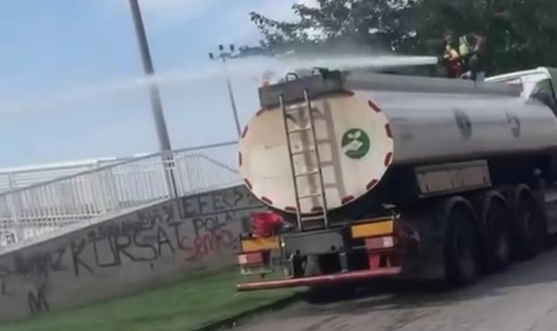 Hava sıcaklığının 30 derecenin üstünde seyrettiği Bursa’da, sıcakta bunalan çocukların talebi üzerine tanker görevlisi, çocukların serinlenmesi için üzerlerine tazyikli su ile püskürttü.