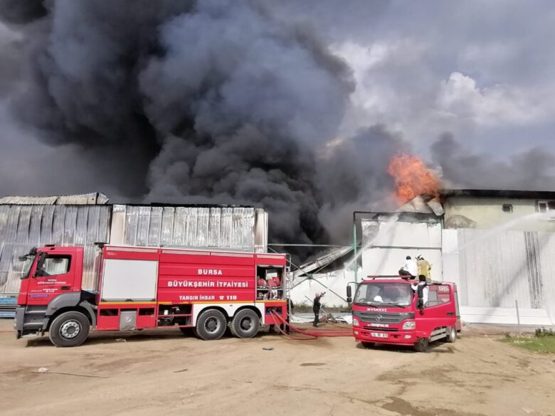 Bursa’nın Gürsu ilçesindeki soğuk hava deposunda çıkan yangın kontrol altına alındı. Bir deponun tamamen küle döndüğü 3 deponun da kısmen zarar gördüğü yangında 10 milyonluk maddi hasarın oluştuğu belirtildi.