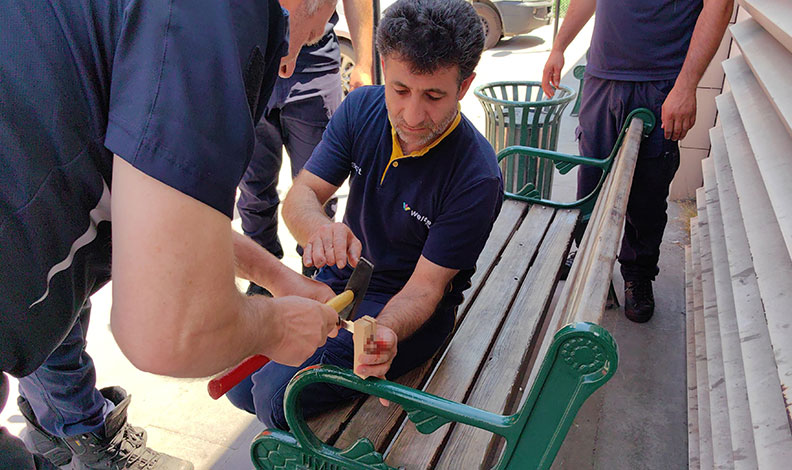 Bursa’da tahtaya çakmaya çalıştığı çivi eline saplandı