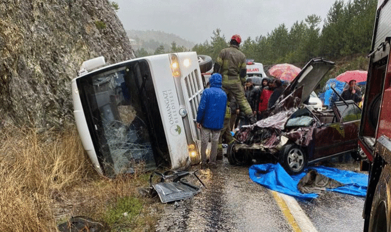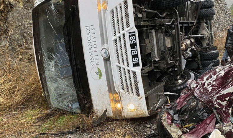 Bursa’da taziye yakınlarını taşıyan otobüs ile otomobil çarpıştı. Kazada 1 kişi hayatını kaybederken, 5 kişi de yaralandı.