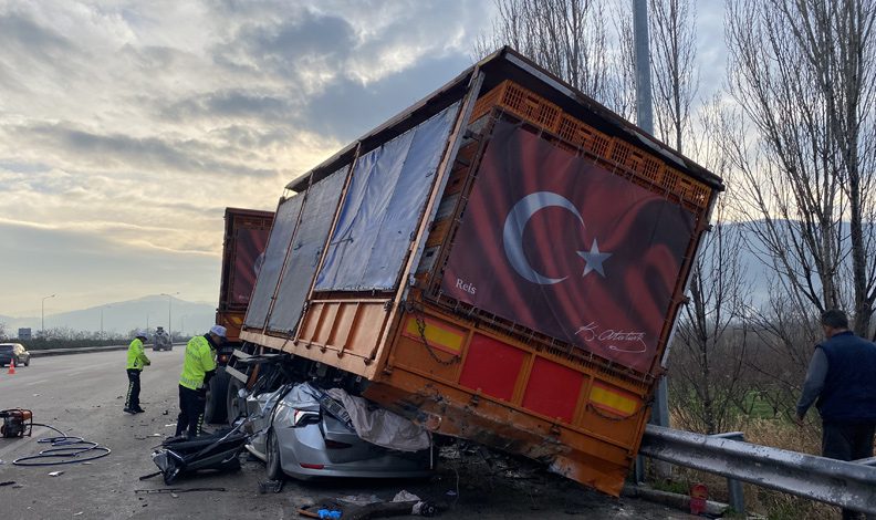 Bursa’da TIR’a çarpan otomobil, dorsenin altına girdi : 1 ölü