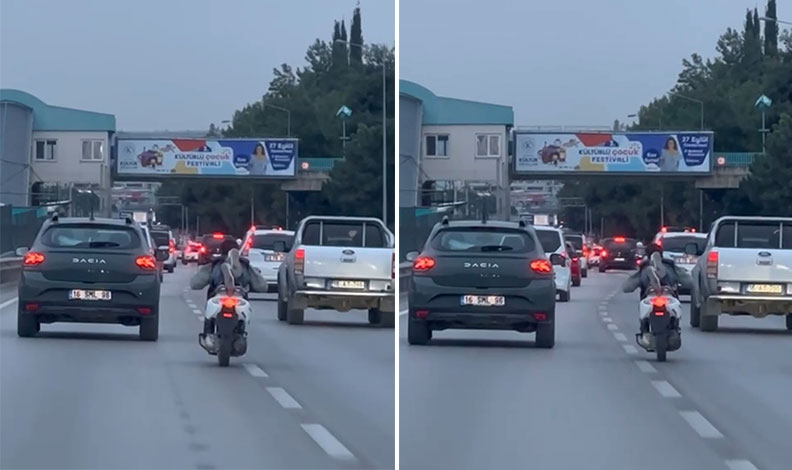 Olay, öğle saatlerinde Nilüfer ilçesi İzmir Yolu Caddesi üzerinde meydana geldi. Edinilen bilgiye göre, plakasız bir motosiklet sürücüsü, yoğun trafikte motorunun üzerine yatarak araçların arasından hızla geçti. Sürücünün bu tehlikeli hareketleri yürekleri ağza getirdi.