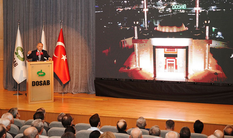 Fakat, camimizin yapıldığı zeminin bozukluğundan dolayı hepinizin bildiği ve ekranlarda da gördüğünüz üzere, cami iç zemininde patlamalar ve dış duvarlarında kopmalar, minarelerinde dökülmeler başlamıştı. 1990’lı yılların ortalarına doğru inşaatına başlandığı zaman zemin etüdü zorunluluğu olmadığı için imalatı zemin etüdü yapılmadan yapılmıştı. Biz eski camimizi deprem hassasiyetini de göz önüne alarak yıkmak zorunda kaldık. Yıkımından sonra zorunlu olduğundan dolayı zemin etüdü yaptırdığımızda, zeminin çok kötü olduğunu ve üzerine böyle bir imalatın yapılamayacağını tespit ettik. Daha sonra sahayı jet grout sistemi ile toprağa beton enjekte ederek sağlamlaştırdık. DOSAB Yeni Cami’ni bir tane dahi kırmızı tuğla kullanmadan, asırlar boyu ayakta kalacak şekilde, çok yüksek dayanımlı betondan yaptık” dedi.