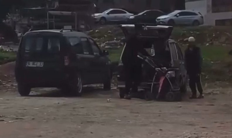 Diğer yandan otomobille belirli noktaya gelerek dilenmek için kullandıkları aksesuarları alarak dilenmeye hazırlanan şüphelilerin o anları cep telefonu kamerasına anbean yansıdı.