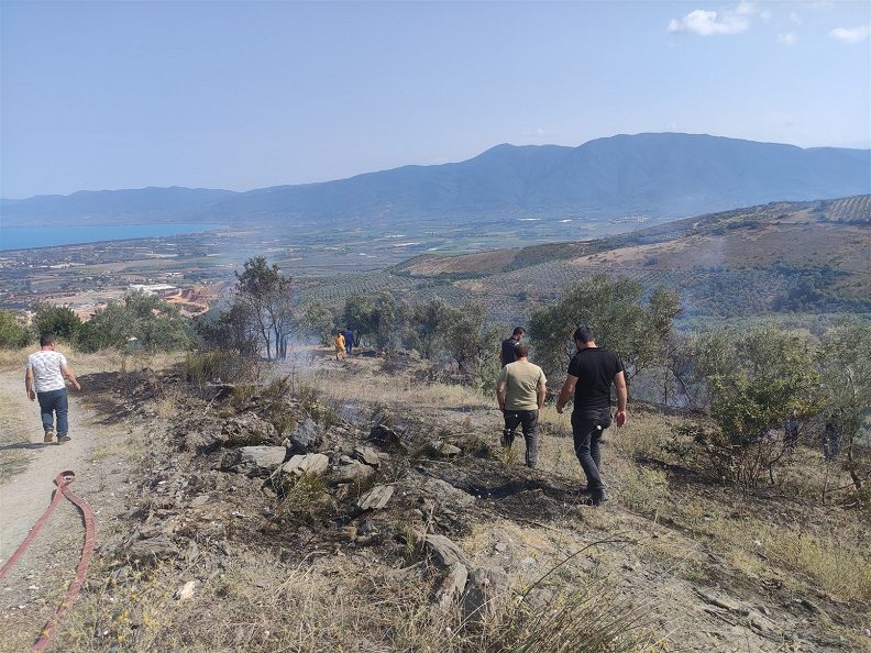 Yangın zeytinlik alanların yanı sıra arazileri çevreleyen çalılık ve otluk alanlara da sıçradı. Rüzgarın etkisi ile yayılan yangına ekipler kısa sürede müdahale etti.