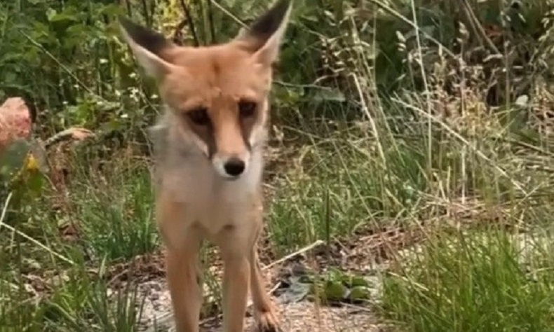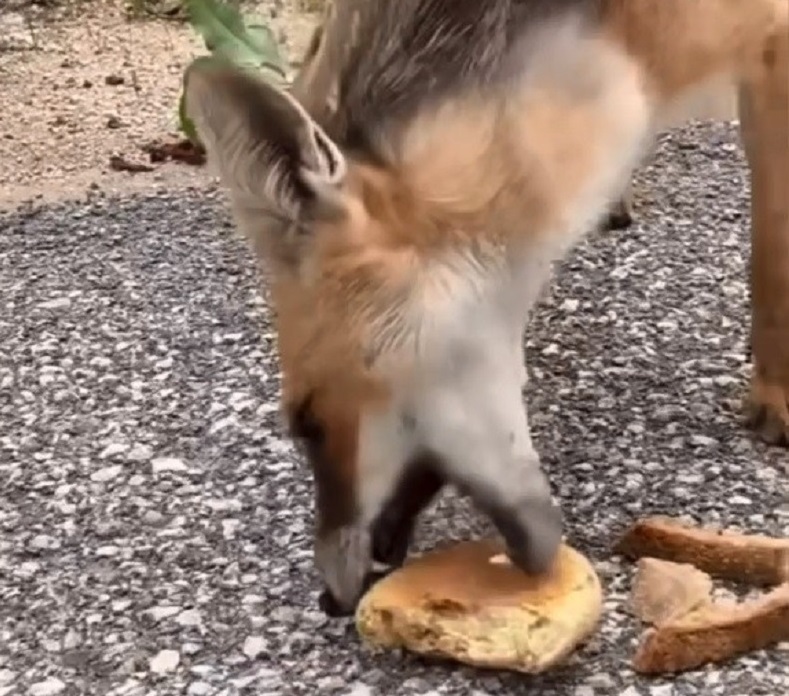 Bursa’da aç kalan tilkiyi vatandaşlar elleriyle ekmek vererek besledi.