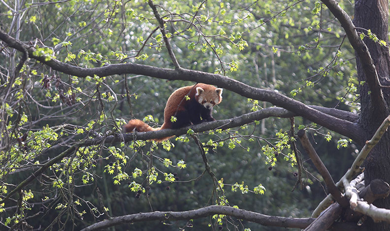 Bursa Büyükşehir Belediyesi Hayvanat Bahçesi’nde kızıl pandalar, bakıcılarının kova ile çıkardığı sesle harekete geçmeye başladı.