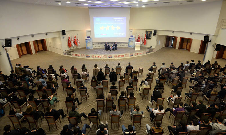 ‘Birlikte güçlüyüz’ sloganıyla gerçekleştirilen etkinliğin moderatörlüğünü yapan BTSO Genel Sekreter Yardımcısı ve Bursa AB Bilgi Merkezi Koordinatörü Hasan Erdem, açılış konuşmasında “AB’nin sunduğu ayrıcalıklı eğitim fırsatlarını üniversite hazırlığında olan gençlerimiz yakından takip etmeli. Yurt dışında eğitim imkanlarını araştırmaya başlamak, ilk adımı atmaktır. Gençlerimizin kariyer planlamasında önemli bir yer tutacak bu adım, geleceklerini şekillendirme noktasında ışık tutacaktır. AB Bilgi Merkezi olarak bizler de etkinliklerle öğrencilerimizin yanında olmaya devam edeceğiz.” ifadelerini kullandı.