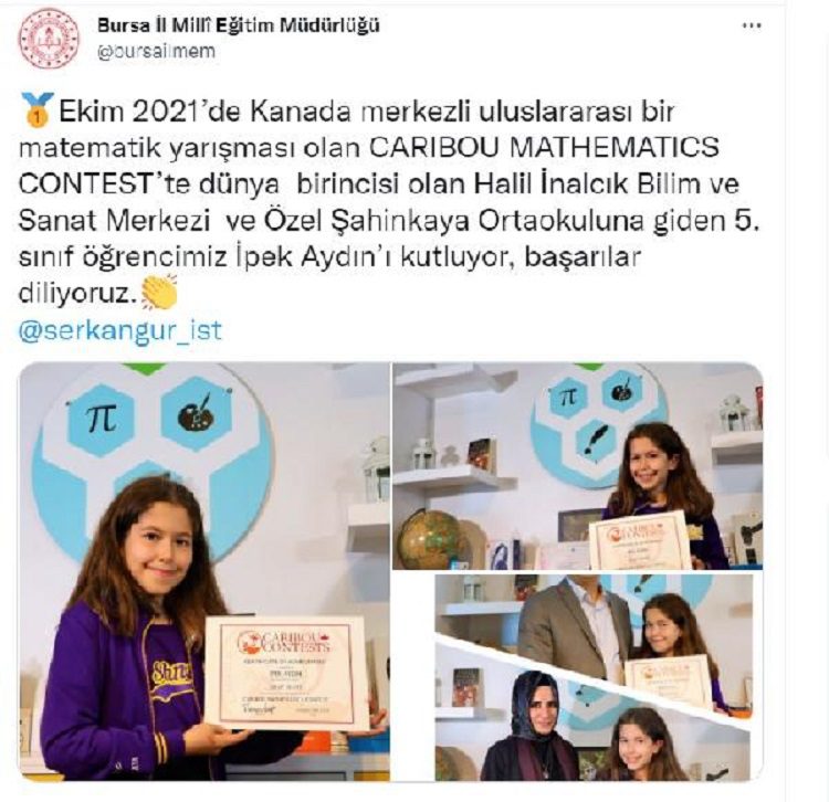 “Yarışmaya okulumuzdan iki öğrencimiz katıldı. İpek Aydın 5’inci sınıflarda, 1’inci sınıflarda da Alper Aydın katıldı. İpek Aydın, Caribou Matematik Yarışması’nda 18 bin 346 kişi arasında dünya birincisi oldu. İngilizce, Çince, Fransızca gibi dillerde yapılan yarışmaydı. Kardeşi Alper Aydın da yine 1’inci sınıflar kategorisinde dünya şampiyonu oldu. Kendi yaş grubunun birincisi oldu. O yarışma da yine İngilizce yapıldı. İki kardeş de çok başarılılar. Ailemiz de son derece ilgili bir aile. Biz de yeteneklerini ve süreçlerini en başından beri okulumuzda takip ediyoruz ve destekliyoruz. Hayalleri büyük. Biz de bu noktada her hayale hizmet eden bir eğitim kurumu olarak onları hayallerine kavuşturmak için doğru yolu göstermeye çalışıyoruz. Öğretmenlerimiz hem öğrencileri hem de velileri tebrik ettiler. Öğretmenlerimiz de çok sevindi. Bizler için de bir gurur kaynağı. Dünya çapında bir yarışma olduğu için çok da güzel karşılandı.”