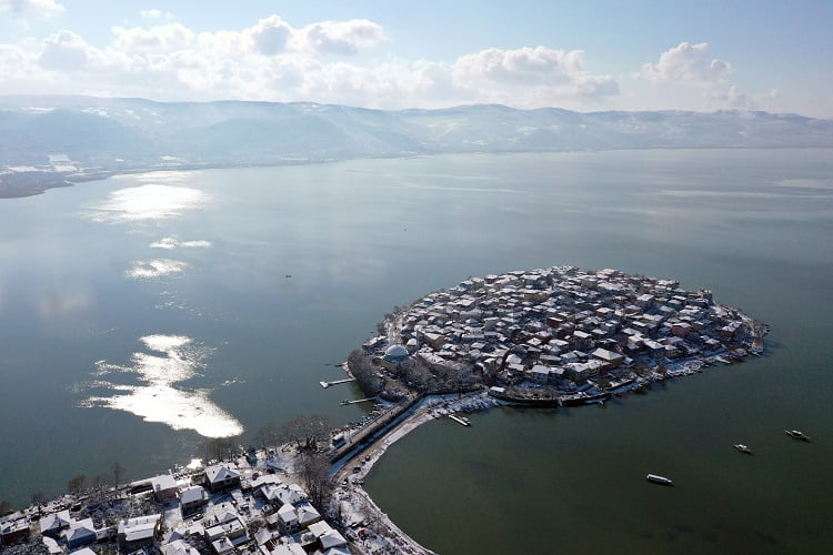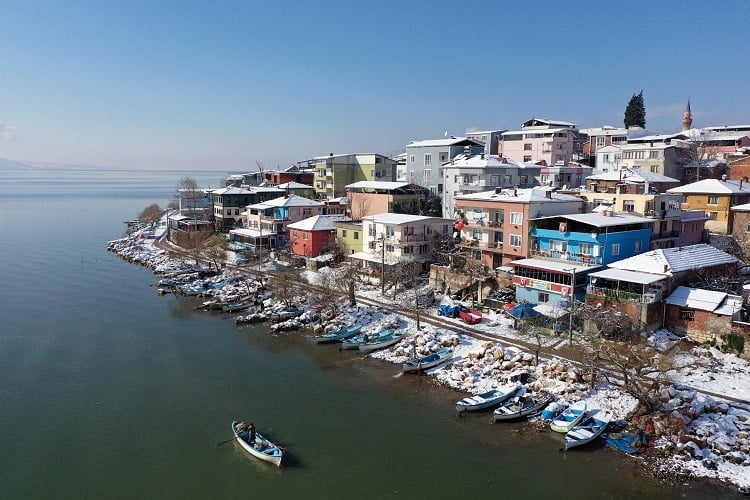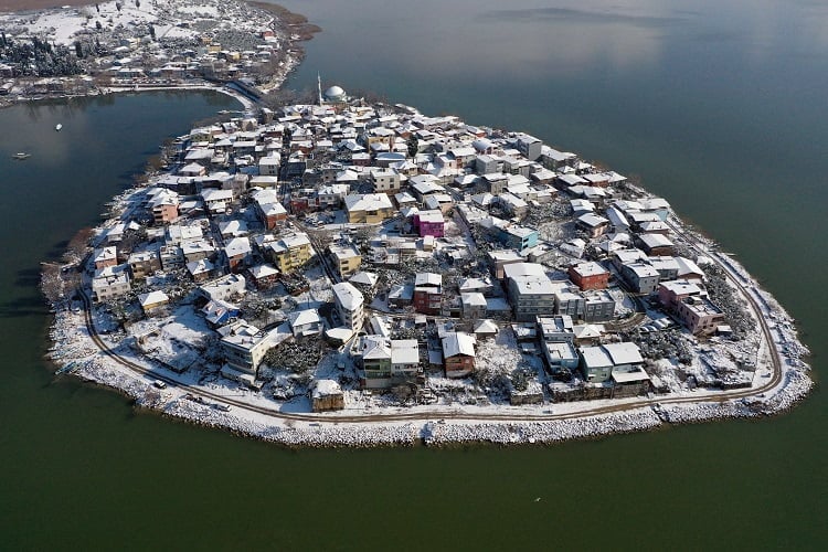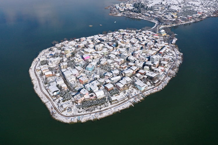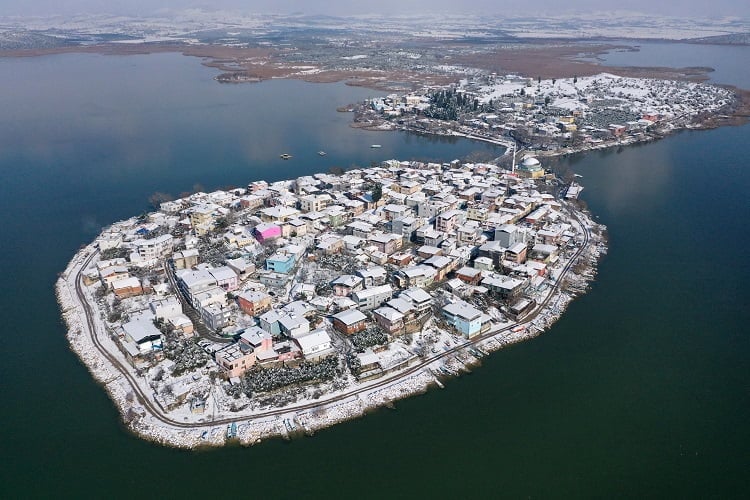 Japon Seyahat Acentaları Birliği tarafından “Avrupa’nın en güzel 30 kasabası” arasında gösterilen, yağışların fazla olduğu dönemlerde göl suyunun yükselip evlerin önüne kadar gelmesinden dolayı “Küçük Venedik” olarak nitelendirilen yarımada üzerine kurulu mahalle bugünlerde beyaz örtüyle kaplandı.