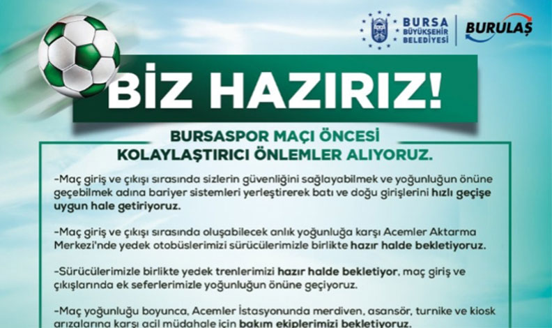 BURULAŞ, Bursaspor’un Kahramanmaraşspor ile karşılaşacağı maç öncesi aldığı tedbir ve önlemleri duyurdu.