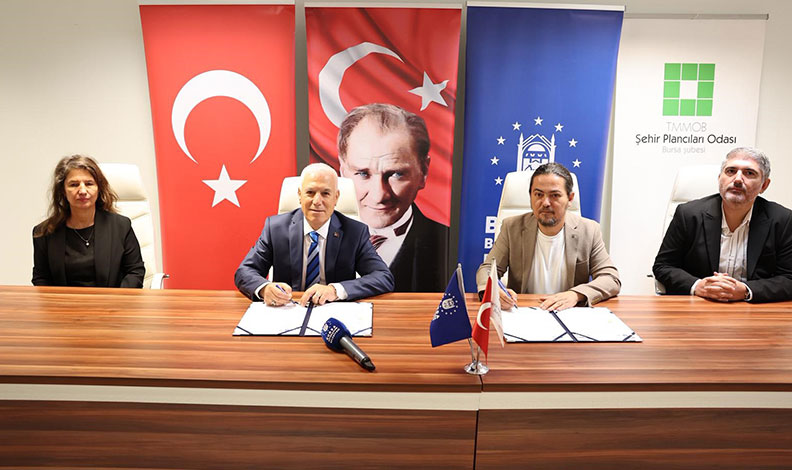 Bursa Büyükşehir Belediyesi ile TMMOB Şehir Plancıları Odası, 6-8 Kasım’da düzenlenecek ‘8 Kasım Dünya Şehircilik Günü 49. Kolokyumu’ için iş birliği protokolü imzaladı. Başkan Mustafa Bozbey, kolokyumun 1/100.000’lik Çevre Düzeni Planı sürecine önemli katkı sağlayacağını söyledi.