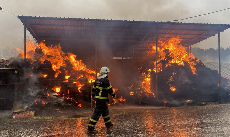 Kirazlı köyü Balaban mevkiinde şiddetli yağış ve gök gürültüsü esnasında hayvan ahırına düşen yıldırım sonucu damda bulunan saman balyaları alev aldı. Bunun üzerine bölgeye Çanakkale Orman Bölge Müdürlüğü ekipleri ve Çanakkale Belediyesi İtfaiye ekipleri sevk edildi. Bölgeye gelen Çanakkale Orman Bölge Müdürlüğü arazözleri ve itfaiye araçları yangına müdahalede bulunuyor. Çıkan yangında yaklaşık 2 bin balya saman küle döndü. Ahırda bulunan 29 baş büyükbaş hayvan salınarak kurtarıldı. Yangında maddi hasar meydana geldi.