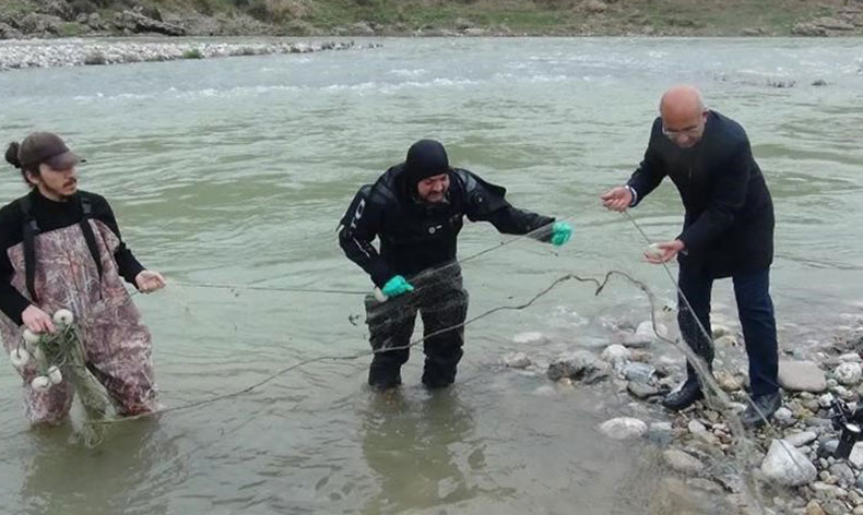 Batman’ın Sason ve Kozluk çaylarında nesli tükenme tehlikesi altında olan ‘Batman Bantlı Çöpçü Balığı’ için çaylarda hayalet ağ temizliği yapıldı.