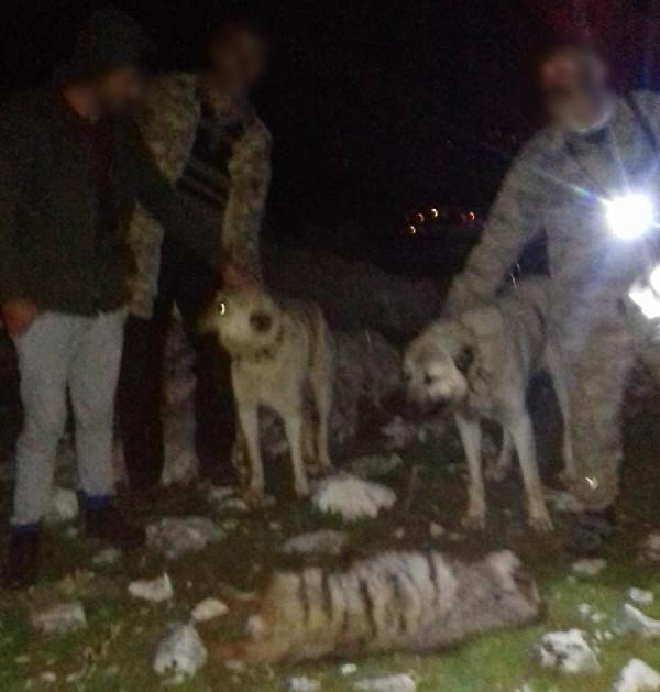 öldürdükleri sırtlanla çektirdikleri fotoğrafı sosyal medyada paylaştı.