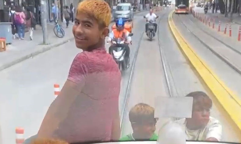 Odunpazarı ilçesi İki Eylül Caddesi’nde meydana gelen olay, görenleri hayrete düşürdü. SSK-Otogar hattında seyir halinde olan tramvayın arka kısmına tutunarak yolculuk yapan çocuk yaştaki 3 şahıs, canlarını hiçe saydı. Hayatlarını riske attıkları tehlikeli yolculukları ile görenleri endişelendiren çocuklar, tramvayda yolculuk yapan bir vatandaş tarafından cep telefonu kamerası ile saniye saniye kaydedildi.