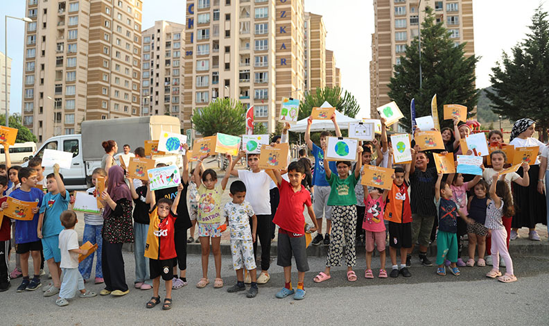 ‘Sevgili Dünya’ temalı resimler çizerek görsel mektuplar oluşturan çocuklar, eğitmenler eşliğinde hayal dünyalarını kağıtlara yansıttı. Gezici Sanat Atölyesi, önümüzdeki günlerde diğer yangın bölgelerini de ziyaret ederek çocukların gündemden uzaklaşıp gülümsemeleri için çeşitli etkinlikler düzenleyecek.