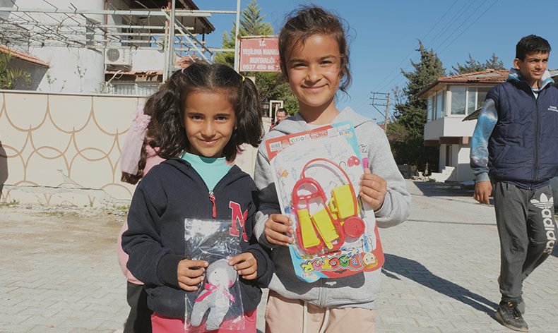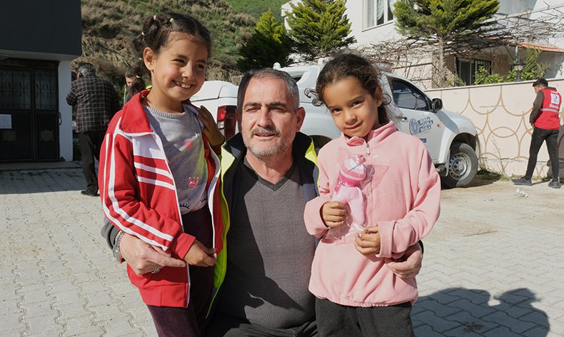 Ekipler, büyük afetin küçük tanıklarını mutlu etmek, onların yüzünde küçük de olsa bir gülümseme oluşturmak için Hatay’da ayak basmadık yer bırakmıyor. Köy köy, mahalle mahalle gezen ekiplerden bazen bir toka, bazen bir pelüş oyuncak almanın mutluluğunu yaşayan çocuklar, büyük felaketin izlerini oyunlar oynayarak siliyor.