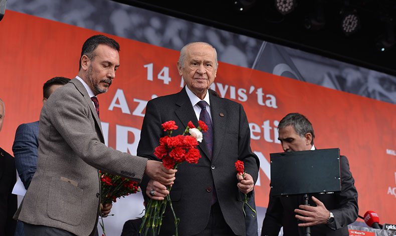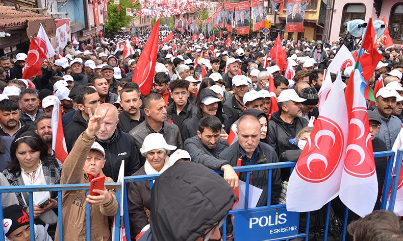 Milliyetçi Hareket Partisi Genel Başkanı Devlet Bahçeli, Tarihi Odunpazarı Meydanı’nda binlerce Eskişehirli ile bir araya geldi. Devlet Bahçeli’nin Açık Hava Toplantısı’na, Cumhur İttifakı’nın temsilciler, partililer ve çok sayıda vatandaş katıldı. MHP Genel Başkanı Devlet Bahçeli, yaptığı konuşmasının büyük bölümünde Millet İttifakını ve Millet İttifakı’nın Cumhurbaşkanı Adayı Kemal Kılıçdaroğlu’nu hedef aldı. Kemal Kılıçdaroğlu’nun alevi olduğunu dile getirmesini ‘samimi’ bulmadığını belirten MHP Genel Başkanı Devlet Bahçeli, “14 Mayıs’a yaklaşırken neden bu açıklamaya gerek duyduğunu da kararlılıkla sorarız” dedi.