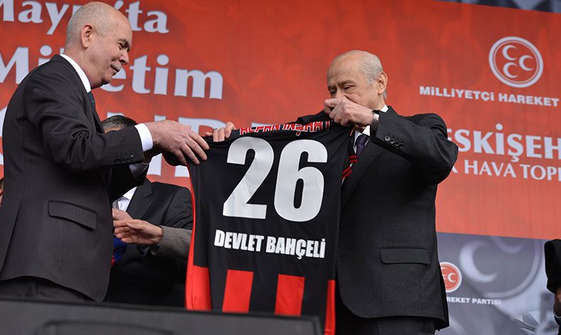 Kemal Kılıçdaroğlu ve Meral Akşener’in sözlerinin PKK ve HDP ile benzerliğinin altını çizen MHP Lideri Bahçeli, “Zillet ittifakı paydasında buluşan partilerin hepsinin ağzı PKK ağzıdır. Terörist Demirtaş ne diyorsa Kılıçdaroğlu aynısını tekrarlamaktadır. HDP’li Buldan neyi söylüyorsa İYİ Parti Başkanı onu iddia etmektedir. Bunlar menfur emel birliği içindedir. Bunlar küresel emperyalizmin dayatmalarına boyun eğmişlerdir. Alçak hedef sahipleri aklını başına alsın, Türk ile Kürt kardeştir, bölücü ve şifreli mesajlarla ayırmak isteyenler kalleştir. Bin yıllık kardeşlik hukukumuz üzerinde hesap yapanlara müsamaha gösteremeyiz. Nifak saçan zillet partilerine hoş görüyle bakmayız, bakamayız. Kandil’e yuvalanmış PKK terör örgütünün elebaşları Kılıçdaroğlu’na aleni destek açıklaması yapıyor. Biri susuyor, diğeri konuşuyor. Biri duruyor, diğeri başlıyor. Türkiye’den ve Türk milletinden intikam almak için fırsat kollayan ne kadar Türk düşmanı varsa aynı kuyrukta sıraya giriyor. Milli birlik ve kardeşliğimizi bozmaya çalışanlara Eskişehir izin vermez. Etnik ve mezhep uçurumuna Türkiye’yi çekmek için provokasyon yapanlara Eskişehir müsaade etmez. Türk milletini aldatamazlar, Eskişehir’i kandıramazlar, ihaneti aklamayı ve temize çıkarmayı asla başaramazlar” ifadelerini kullandı.