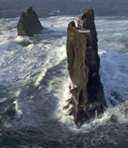 İzlanda’nın güneybatı kıyılarında yaklaşık 7 kilometre uzakta bulunan Thridrangar Deniz Feneri, 80 yıldır hizmet veriyor.