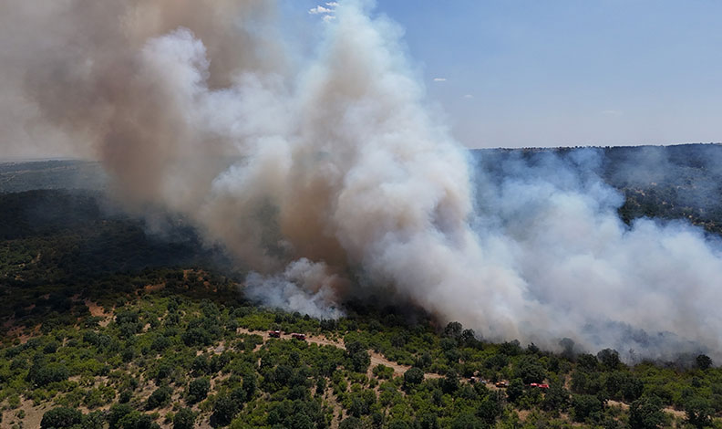 Edirne’nin Bulgaristan sınırındaki Ömeroba köyü yakınlarında çıkan orman yangınına ekiplerin müdahalesi sürüyor.