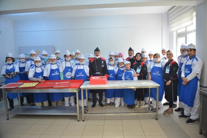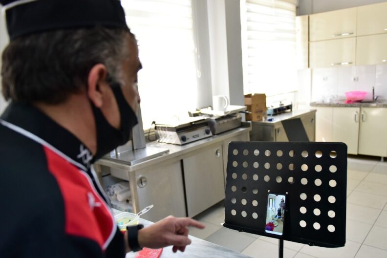 Tüm dünyada olduğu gibi Türkiye’de de etkisini gösteren korona virüs (Covid-19) tedbirleri kapsamında eğitime ara veren,Yıldırım Belediyesi Sosyal Destek Hizmetleri Müdürlüğü bünyesinde engelli ve dezavantajlı grupları topluma kazandırmayı hedefleyen Engelsiz Mutfak, eğitimlerine online ortamda yeniden başladı. Dezavantajlı bireylerden oluşan kursiyerlere yönelik eğitimlerini her koşulda yeniden sürdürmek isteyen Engelsiz Mutfak eğitmenleri, ilk derslerini gerçekleştirdi. ‘10-16 Mayıs Engelliler Haftası’ etkinlikleri kapsamında kolları sıvayan Engelsiz Mutfak kursiyerleri, üzerinde kılıç, tabanca ve testi figürleri bulunan çörekler hazırladı. Eğitmenlerinin online yönlendirmeleri ve tarifleri doğrultusunda çörek yapımında tüm hünerlerini sergileyen Engelsiz Mutfak öğrencileri, eğitmenlerden tam not aldı.