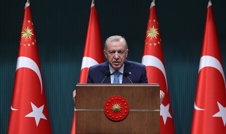 Cumhurbaşkanı Recep Tayyip Erdoğan, Cumhurbaşkanlığı Külliyesi’nde düzenlenen Kabine Toplantısı’nın ardından “Millete Sesleniş” konuşmasını gerçekleştirdi. Erdoğan, toplantıda dış politikadan sanayiye, ekonomiden güvenliğe birçok konuyu mütalaa ettiklerini belirterek, kabinede alınan kararların ülke, millet ve tüm insanlık için hayırlara vesile olması temennisinde bulundu. Cumhurbaşkanı Erdoğan, “Buradan hangi siyasi görüşten, hangi etnik kökenden olursa olsun Türkiye için çalışan, Türkiye için dertlenen, kalbi Türkiye için atan herkese, tüm vatandaşlarıma içtenlikle teşekkür ediyorum. Toplantımızın detaylarına geçmeden evvel bir hususun altını çizmek istiyorum: Küresel sistemdeki çatırdamaların olumsuz etkilerini en fazla hissettiğimiz kırılgan bir dönemden geçiyoruz. Yakın çevremize baktığımızda savaşların, çatışmaların, gerilimlerin, siyasi ve ekonomik dalgalanmaların hiç eksik olmadığı görülüyor. Türkiye’nin içinde yer aldığı bölge, şairin ‘akrebin kıskacında yoğrulmuş’ ifadesinde anlamını bulan sürecin tam ortasındadır” dedi.