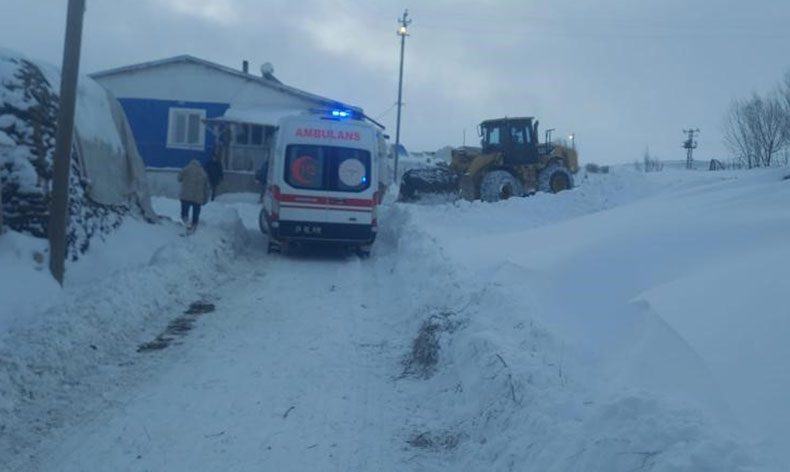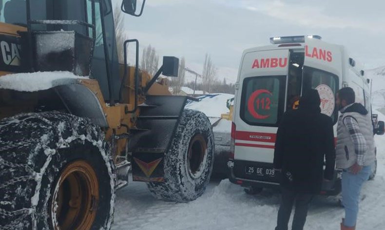 Erzurum’un Horasan ilçesinde kalp hastası kadın, kapalı olan yol açılarak hastaneye getirildi.