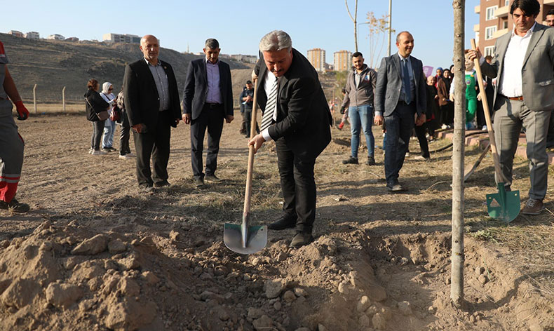 Gelecek nesillere daha yeşil bir Melikgazi bırakmak için çalışma yürüttüklerini söyleyen Melikgazi Belediye Başkanı Doç. Dr. Mustafa Palancıoğlu; “Esenyurt Mahallemizde muhtarımız, KAYEMA Vakfımız, Çevre Dostları Derneği, Şehit Binbaşı Turgay Çelik Kız Anadolu İmam Hatip Lisesi öğrencilerimiz ile birlikte Milli Ağaçlandırma Günü çerçevesinde tam 11 günde 10 bin ağacı toprakla buluşturacağız. Fidan değil; ağaç dikiyoruz. Ağaçlarımızın düzenli sulaması ile kök salma imkanı yüzde 90 artıyor. Yeter ki sulamasını düzgün yapalım. Burada biraz önce arkadaşlarımız dikim yaptılar. Dış budak ağaçlarımızı toprakla buluşturuyoruz. Çocuklarımız bizim geleceğimiz. İnşallah daha yeşil, daha güzel bir Melikgazi’yi çocuklarımıza bırakacağız. Milli ağaçlandırmayı yalnızca belediyelere bırakmayalım hepimiz ağaç dikelim. Çünkü fidan dikmek herkesin bir çevre görevi. Hayırlı olsun” dedi.