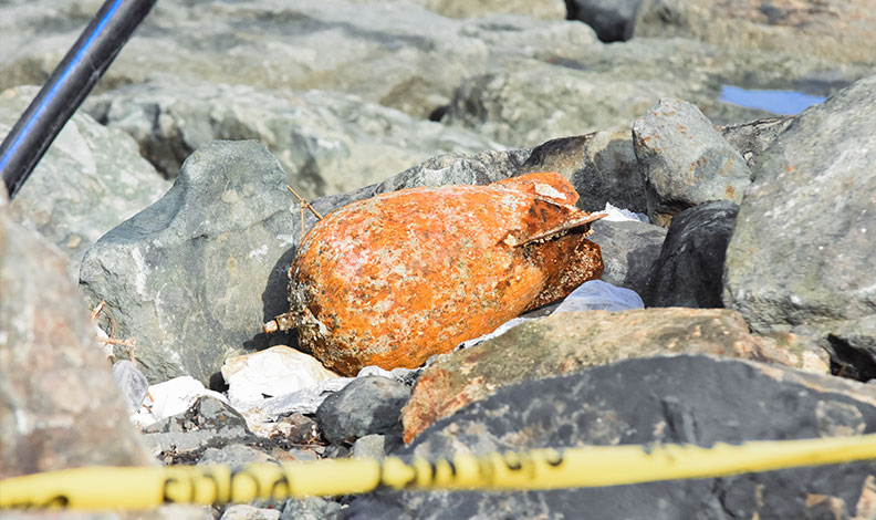 Fırtınada dalgaların getirdiği deniz mühimmatı Rize’de karaya vurdu