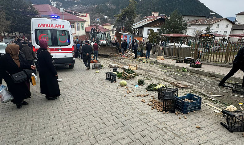 Artvin’in Şavşat ilçesinde freni boşalarak yokuş aşağıya kayan iş makinesi, caddeye kurulan pazarın içerisine daldı. Kaza sonucu 1 kişinin hafif şekilde yaralandığı olayda maddi hasar meydana geldi.