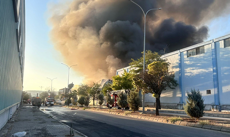 Gaziantep’te bir halı fabrikasında bilinmeyen bir nedenle yangın çıktı. Dumanların gökyüzünü kapladığı yangına çok sayıda itfaiye ekibiyle müdahale ediliyor.