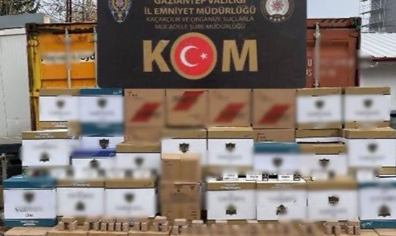 Gaziantep İl Emniyet Müdürlüğü’ne bağlı Kaçakçılık ve Organize Suçlarla Mücadele ekipleri, 2 iş yeri, 1 araç ve 1 depoda arama yaptı. Yapılan aramada gümrük kaçağı 2 milyon 799 bin adet sigara kağıdı yaprağı, 770 bin adet boş makaron, 2 bin 290 paket sigara, bin 950 gram pipo tütünü, 905 adet puro ve 30 adet elektronik sigara ele geçirildi.