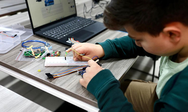 Atölyede dersler uygulamalı olarak yürütülüyor. Çocuklar, sensörler, motorlar, devre elemanları ve kodlama platformlarıyla birebir çalışarak kendi projelerini oluşturuyor. Böylece yalnızca teorik bilgi edinmekle kalmayıp, gerçek hayatta karşılığı olan ürünler geliştirme fırsatı buluyorlar. Eğitimlerde takım çalışması, yaratıcılık ve problem çözme gibi beceriler de ön plana çıkarılıyor.