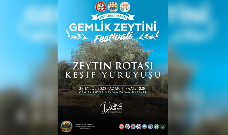 32. Uluslararası Gemlik Zeytini Festivali kapsamında düzenlenen Zeytin Rotası Keşif Yürüyüşü, 28 Eylül 2025 Pazar günü gerçekleştirilecek. Etkinlik, saat 10.00’da Gemlik İskele Meydanı’ndan başlayacak.