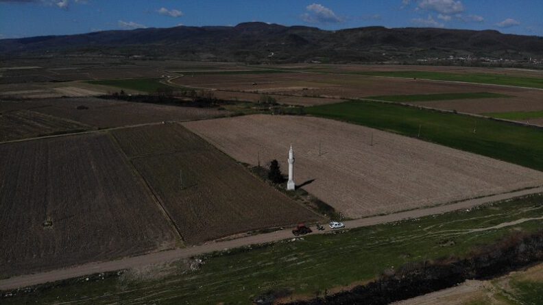 Balıkesir’in Manyas ilçesine bağlı Işıklar Kırsal Mahallesi’nde tarlaların arasında bulunan minare görenleri şaşkına çeviriyor.