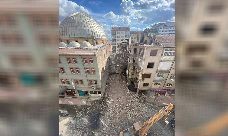 Hasarlı binayı yıkarken sağlam camiye zarar verdiler
