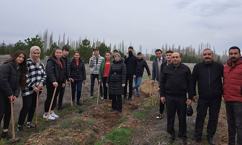 Okul Müdürü Mehmet Aksoy öncülüğünde öğretmen ve öğrenciler fidan dikimi gerçekleştirdi. Fidan dikimi ile ilgili konuşan Aksoy, “Ormanlarımız bizim için çok önemli. Toplumumuz için gençlerimiz ne kadar önemliyse ülkemizin toprakları için fidanlar o kadar önemlidir. Bugün rahat bir nefes alıyorsak, uçuşan kelebekler böcekler görebiliyorsak bunların olmazsa olmazı ağaçtır. Deprem bölgesinde vefat eden tüm vatandaşlarımıza rahmet, yaralılarımıza acil şifalar dilerim” dedi.