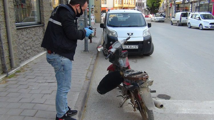 Sokağa çıkması yasak olan genç uyarıldı. Ardından kurallara uymadığı için 3 bin 182 lira idari para ceza kesildi. M.M.’ye trafik ekipleri de ehliyetsiz motosiklet kullanmaktan dolayı ceza kesti. Ayrıca trafik ekipleri motosikletin şase numarasının kazındığını görünce çalıntı olabileceği şüphesiyle olay yeri inceleme ekiplerine haber verdi.
