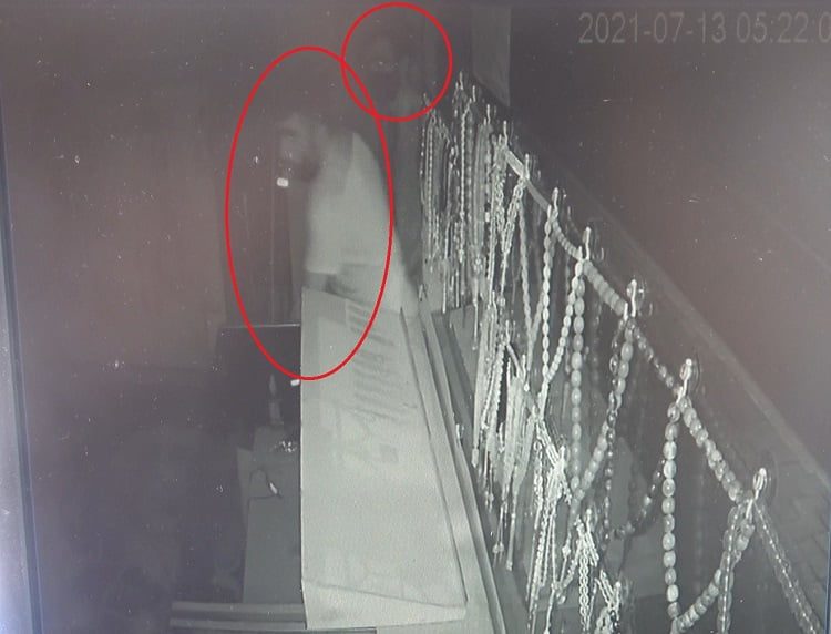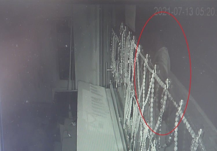 Olay anı ise iş yerinin güvenlik kameralarına anbean yansıdı. Görüntülerde, iki kişinin ilk olarak dükkan kapısının önüne gelerek kilidi kırdıktan sonra kaçtıkları, daha sonra geri dönerek kapıyı açıp girdikleri görüldü. Diğer açıdan ise, vitrinde ve camda asılı olan gümüş aksesuar ve eşyaları alarak hızla kaçtıkları görüldü.