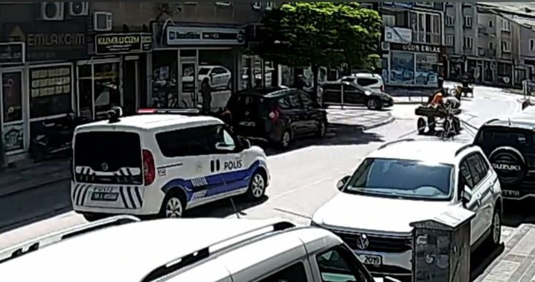 Çalışma nedeniyle kapalı olan yola giren şüpheliler, at arabasını bırakarak yaya olarak kaçtı. Polis ekipleri, demirlere ve at ile araca el koydu. Şüphelilerin yakalanması için çalışmalar devam ederken, kovalamaca bir iş yerinin güvenlik kamerasına saniye saniye yansıdı.