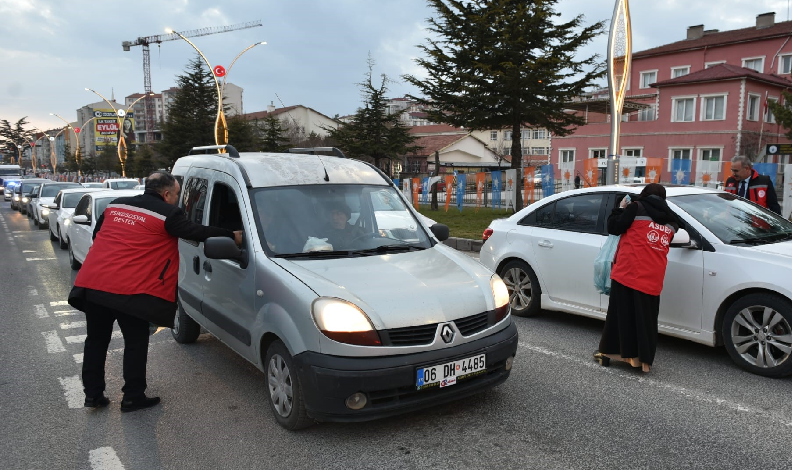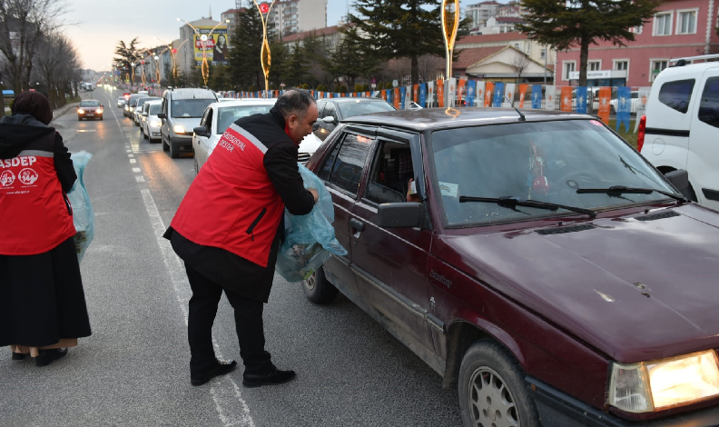 Yozgat Aile ve Sosyal Hizmetler İl Müdürü Arif Topal, personeli ile birlikte iftar saatin Terminal kavşağında trafikte bekleyen araçlara hazırladıkları kumanyaları dağıtarak orucunu açamayanların yanında oldular.