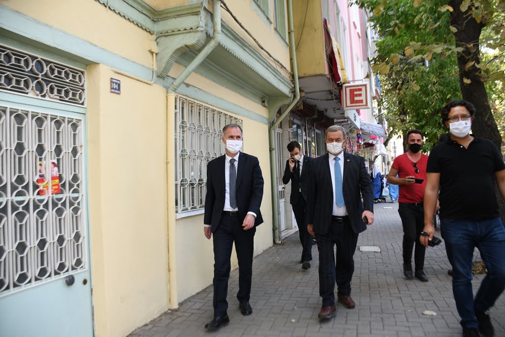 Kaymakam Şükrü Görücü ile Belediye Başkanı Alper Taban, sokak sokak cadde cadde gezerek Covid-19 denetimlerini sürdürüyor. Esnaflar ve vatandaşlar maske, mesafe ve hijyen kurallarına uymaları noktasında uyarılıyor.