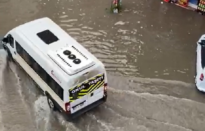 İlçedeki cadde ve sokaklar göle döndü. Yağışa hazırlıksız yakalananlar ise çevredeki kapalı alanlara sığındı.