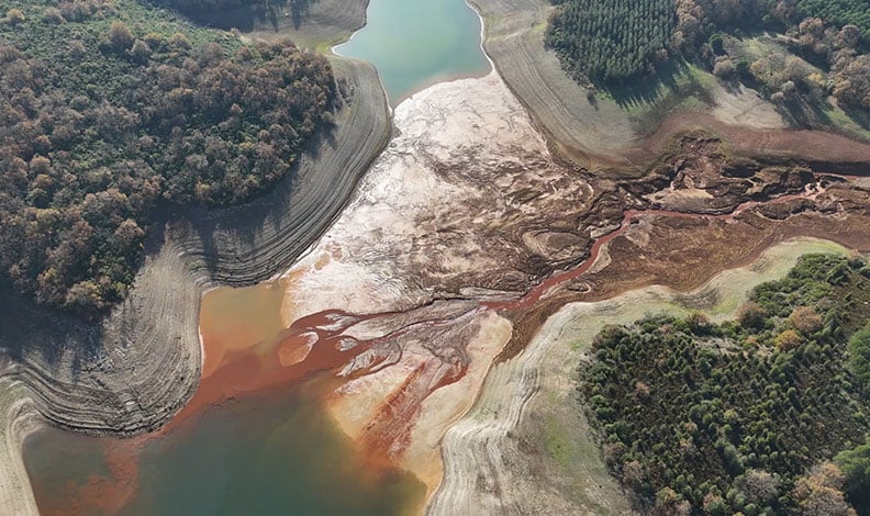 İstanbul’daki barajlarda su seviyesi hızla düşmeye devam ediyor. Özellikle kentin en önemli su kaynaklarından biri olan Ömerli Barajı’nda, suların yer yer tamamen çekildiği görüldü. Havadan çekilen görüntüler, kuraklığın ulaştığı boyutu gözler önüne serdi.