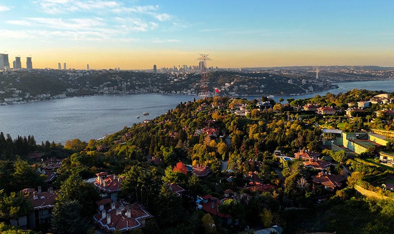 Kış mevsiminin habercisi olan sonbahar, İstanbul Boğazı boyunca eşsiz manzaralar sunarken, özellikle Kandilli çevresinde dron ile kaydedilen görüntüler eşsiz bir atmosferi gözler önüne serdi. Boğaz’ın mavisi, gün batımının altın tonlarıyla bütünleşirken, bölgedeki ormanlık alanların sarı ve kızıl yaprakları tabloyu andıran bir görünüm oluşturdu. Fatih Sultan Mehmet Köprüsü’nün görkemli siluetiyle birleşen bu manzara, İstanbul’un doğal güzelliklerinin yanı sıra tarihi dokusunu da ön plana çıkartı. Şehrin yoğunluğundan uzak konumuyla Kandilli, Boğaz’ın huzurlu yüzünü yansıtan en özel semtlerden biri olarak öne çıkıyor. Üsküdar’ın kıyı şeridinde sıralanan tarihi yalılardan bazıları da bölgeye ayrı bir estetik katıyor. Kıbrıslı Yalısı, İsmail Paşa Yalısı, Abud Yalısı, Kont Ostrorog Yalısı, Hadi Semi Yalısı ve Edib Efendi Yalısı hem mimari zarafetleri hem de geçmişten günümüze uzanan tarihi özellikleriyle dikkat çekiyor.