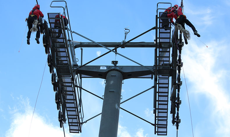2 bin 330 metre yüksekliğe sahip Ilgaz Dağı Milli Parkı içerisinde bulunan kayak merkezinde senaryo gereği teleferikte mahsur kalan iki kişiyi kurtaran JAK timleri, telesiyej tellerine tırmanarak, halat üzerinde hünerlerini sergiledi.