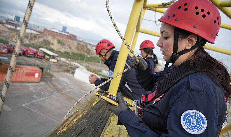 Bursa merkez ve 17 ilçede vatandaşların can ve mal güvenliğini korumak için 7-24 nöbet tutan Bursa Büyükşehir Belediyesi İtfaiye Daire Teşkilatı, trafik kazaları ve doğal afetlere mücadele çerçevesinde profesyonel ekiplerle anında müdahale edebilmek için itfaiye teşkilatını güçlendirmeye devam ediyor. Artan ihtiyaçlar ve Bursa halkına en iyi şekilde hizmet verebilmek için yeni döneme kadın itfaiyecilerle giren itfaiye teşkilatı, 2024 yılında yaklaşık 18 bin olaya müdahale etti. Kadın personele 5 ay önce kadro açan Bursa İtfaiyesi, bünyesinde yaklaşık 24 kadın itfaiyeci bulunduruyor. İtfaiyeci kadınların her hafta aldığı ısıya dayanıklılık, trafik kazasına müdahale, kuleden iniş, yangına müdahale gibi aldığı eğitimler, komanda eğitimlerini aratmazken, zorlu mücadele kameraya anbean yansıdı.